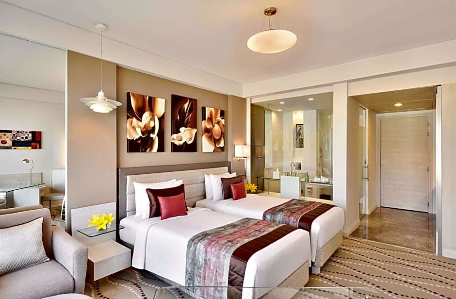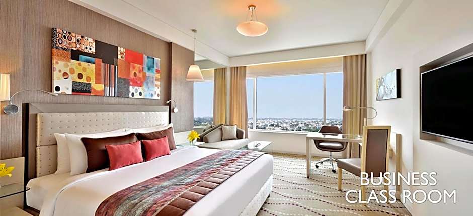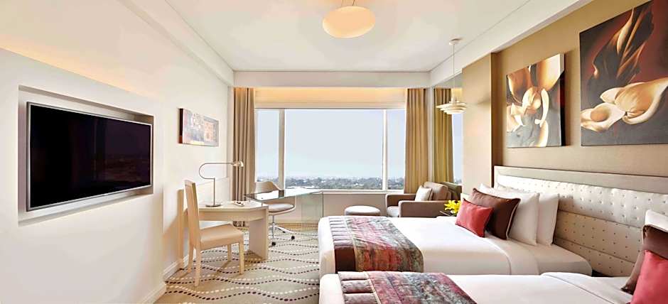 Rooms feature sophisticated design and contemporary furniture, including a spacious work desk and an LED TV.